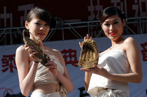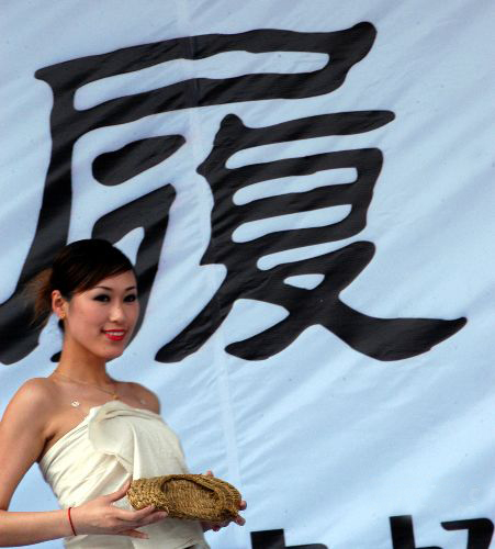2006年4月23日,“中華鞋履文化展”在山東濰坊中百大廈開展。中華鞋履文化展,共展出近百雙上至先秦、下至上世紀三四十年代的頗具代表性的鞋。作者:王志德