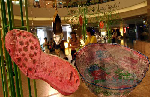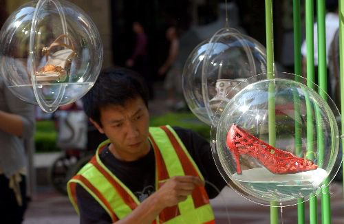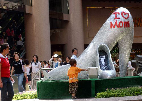 香港時代廣場于母親節期間,舉辦名為“女·鞋時代”將40款5個著名品牌的高跟鞋展出。各展臺的設計創意都非常別致。 |