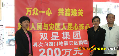 雙星再向四川地震災區(qū)捐款200萬元