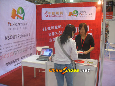 中國鞋網工作人員為參觀商介紹鞋網服務