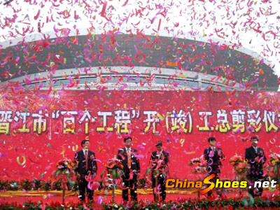 【】備受全球制鞋行業關注的第十一屆中國(晉江)國際鞋業博覽會,在“中國鞋都”福建晉江SM廣場開幕。本屆鞋博會以“時尚鞋都 信心暖春”為主題。作為第11屆鞋博會的首項重頭戲,泉州晉江百個工程開(竣)工總剪彩儀式于昨日舉行,132個項目總投資額達206.7億元人民幣。這些開(竣)工項目的出現,是晉江應對經濟“寒冬”的重大舉措,也是深化項目帶動戰略的一次集體“亮劍”。