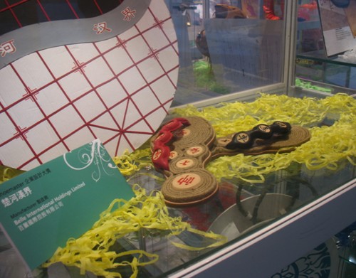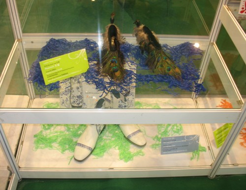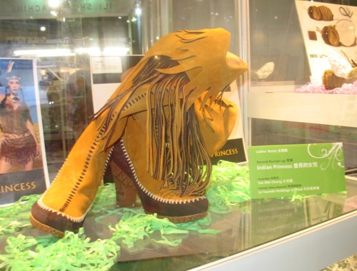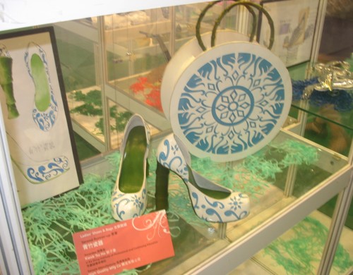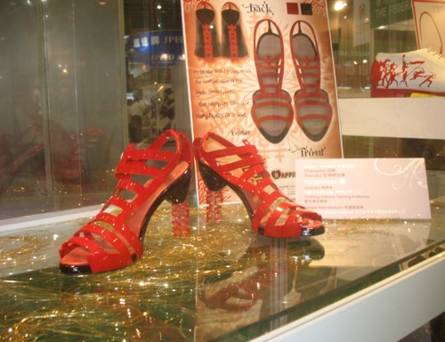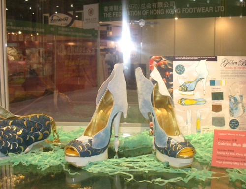 中國鞋網05月05日訊,2010年5月04日,第十一屆中國東莞國際鞋展•鞋機展•手袋展上,除了可以看到成品鞋、手袋、鞋袋材料及機械四大主要展區之外,還有一個獨特的展區也吸引了不少觀眾的駐足觀賞,那就是第十一屆香港鞋款設計比賽的獲獎作品展示區。一雙雙獨具匠心的鞋款充滿著作者的奇思妙想,新穎設計及創作意念更是令人嘆為觀止。有充滿中國元素的“60年的光榮路”、“楚河漢界”、“青竹瓷器”、“囍”,還有前衛時尚的“首長的女兒”、“引誘物”、“人魚公主”、“盛藍”、“孔雀”等等作品,充分將傳統與現代、流行與經典完美結合,演繹出最具潮流趨勢的個性化鞋款。