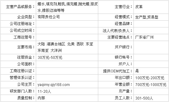 本公司主要批發(fā)高光蠟水,中光蠟水,古董鞋乳,高光鞋乳,特黑填充劑,填充蠟,天然棕櫚蠟,猄皮水,橡膠邊油等等,歡迎電詢.