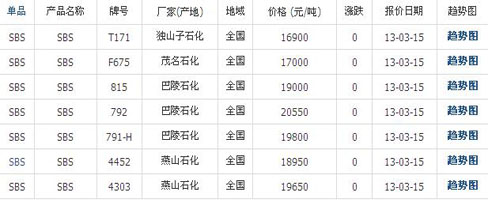 03月15日國內(nèi)SBS橡膠各地市場價格