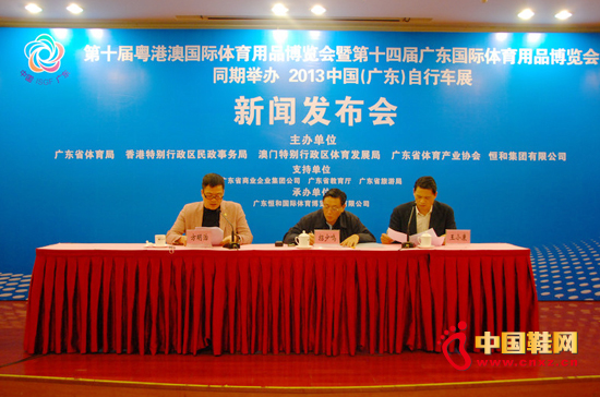 【中國鞋網-展會新聞】第10屆粵港澳國際體育用品博覽會暨第14屆廣東國際體育用品博覽會、2013中國(廣東)自行車展,將于今年8月16日~18日在廣州琶洲中國進出口商品交易會展覽館舉辦,組委會4月22號在廣州召開新聞發布會。本屆博覽會由廣東省體育局、香港特別行政區民政事務局、澳門特別行政區體育發展局、廣東省體育產業協會、恒和集團有限公司聯合主辦。以“培育幸福導向型體育產業”為主題,展覽面積將達50000平米,設立標準展位超過2500個,預計參展單位近600余家。